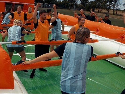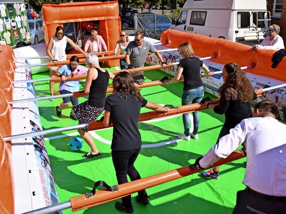 Im Menschenkicker erlebst du pure Emotionen, die Generationen überbrücken. Stell dir vor, du und deine Freunde stehen gemeinsam in einem aufblasbaren Spielfeld, das wie ein riesiger Tischkicker ist. Egal ob jung oder alt, Sportler oder nicht, mit oder ohne Handicap – hier zählt nur der Moment, in dem ihr Seite an Seite lacht, kämpft und gewinnt.
