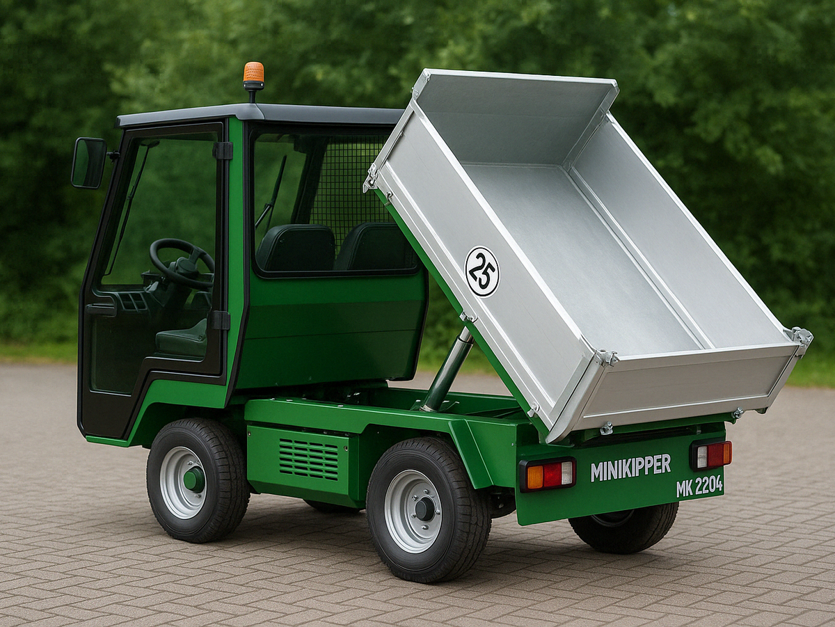 Der Mini-Kipper MK1700E ist ein umweltfreundliches, elektrisches Nutzfahrzeug mit einem kraftvollen 48-Volt-Antriebssystem, hydraulischer Lenkung und einer Nutzlast von bis zu 1.400 kg. Er bietet eine erhöhte Laufzeit und bequemes Laden mit einer 1.000 x 1.800 mm Pritsche.
